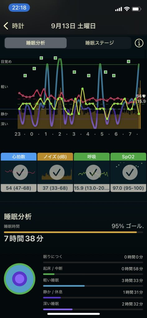 今日の睡眠記録 9月12日→9月13日