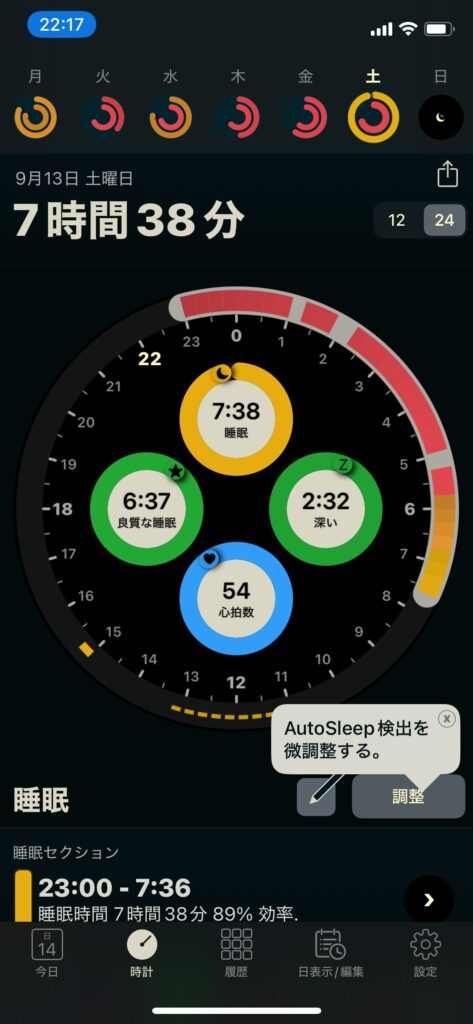 • 睡眠時間:7時間38分